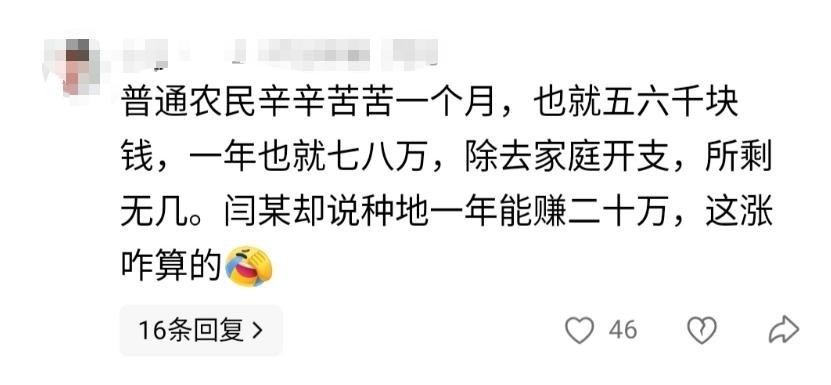 5. 网友随即深挖其过往言论,形成一场舆论层面的“补刀风暴”。其中最刺痛大众神经的是她曾公开表示:“农村根本没有穷人,种地一年轻松赚十几二十万,穷都是因为懒。”